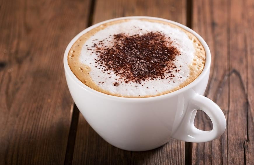 Freshly steamed milk with vanilla-flavored syrup marked with espresso and topped with a caramel drizzle for an oh-so-sweet finish.